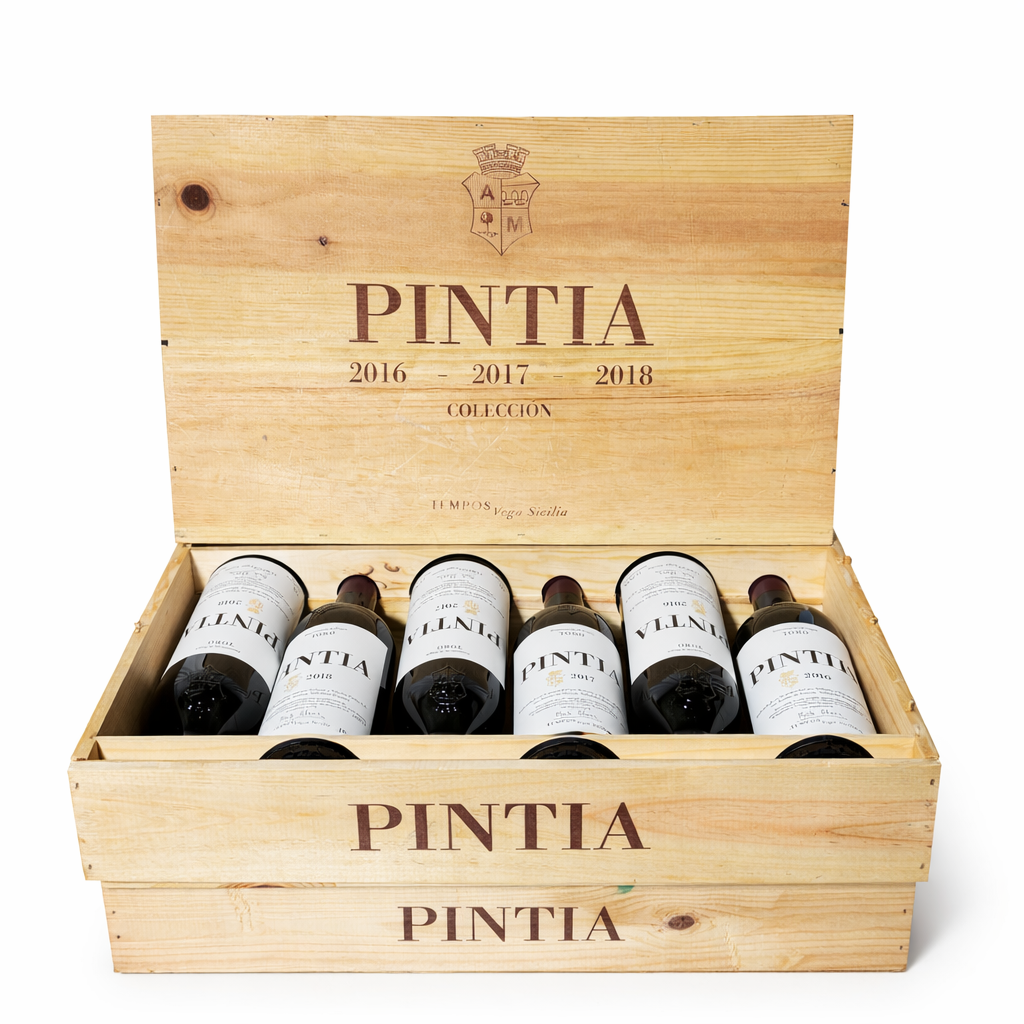 A Coleção Pintia apresentada em caixa de madeira é composta por: